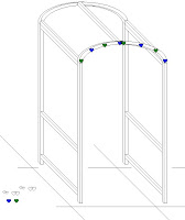 Our only local cousins oldest son Jeremy is getting married to Natalia (who is already part of the family) in just less than one month! I asked them what they would like me to make for them as a gift and instead of some piece of indoor furniture, they came up with the idea of a garden arbor - that they will be married under! How fun is that? The only picture for this post is a simple illustration of the basic frame of the arbor / arch. Five feet wide and four feet deep, it will be the perfect size to frame the lovely couple and minister, and a garden bench afterward. The design is Jeremy and Natalia's - I just had to figure out how to fit the bits together.